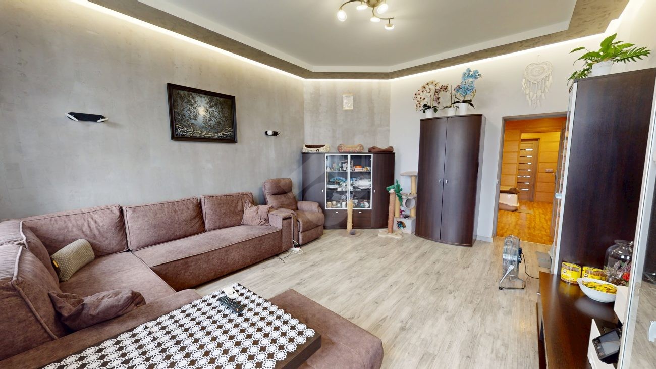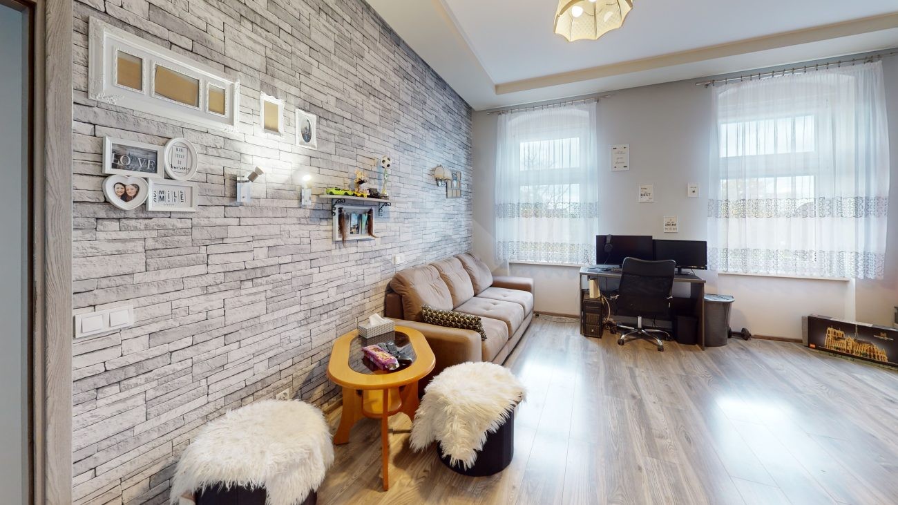 Wnętrze zachwyca jasną, przestronną aranżacją, która emanuje spokojem i przytulnością. Naturalne światło i przemyślany układ tworzą komfortową przestrzeń do życia.