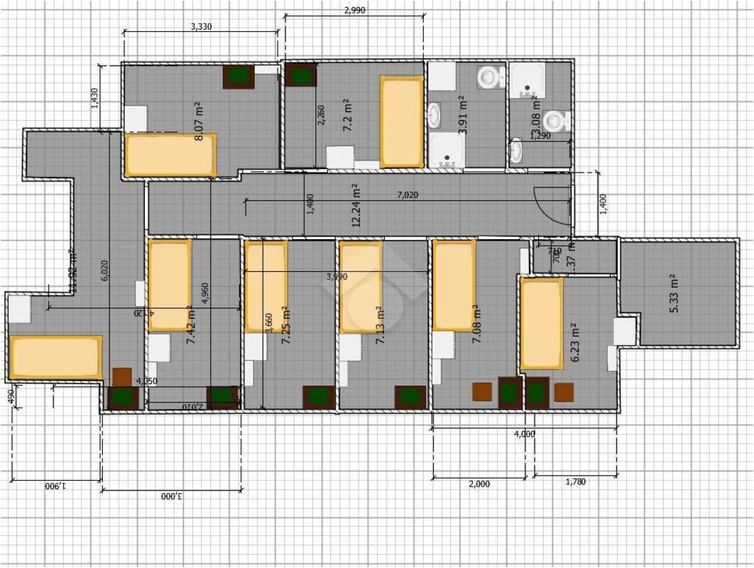 Doskonała propozycja inwestycyjna pod wynajem długoterminowy na pokoje. Do dyspozycji mieszkańców jest osiem prywatnych pokoi oraz w części wspólnej kuchnia i 2 łazienki wyposażone w prysznic. Wszystkie pokoje w mieszkaniu posiadają okna, dzięki czemu są dobrze oświetlone. Na podłodze znajdują się panele oraz kafelki.