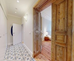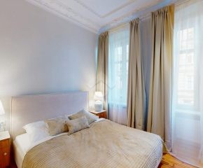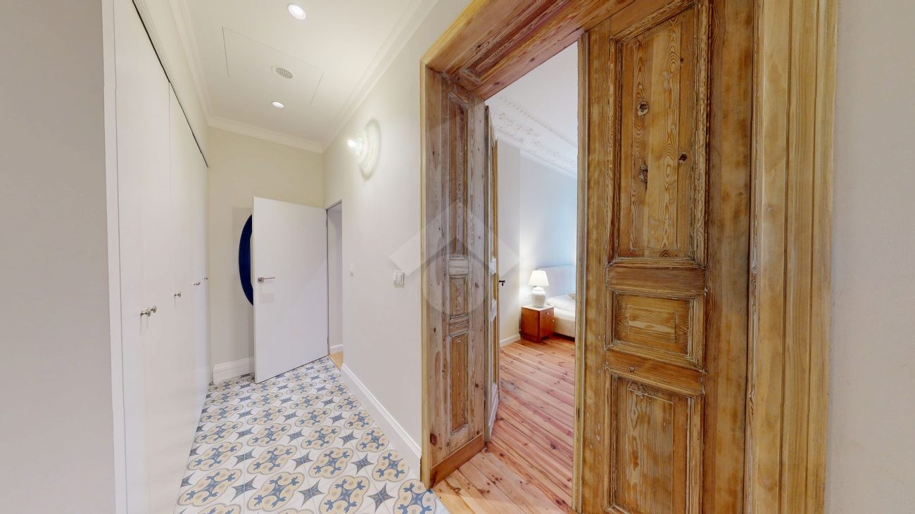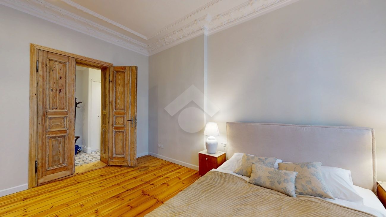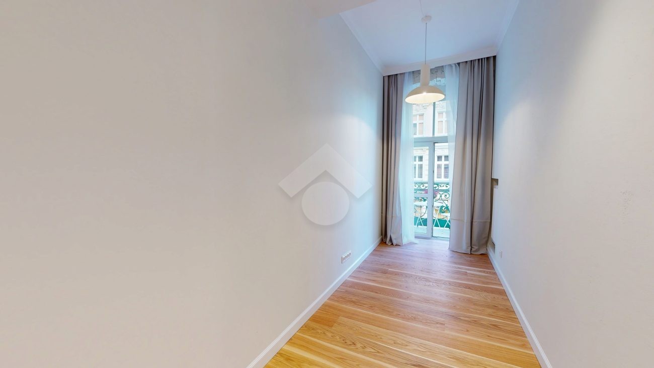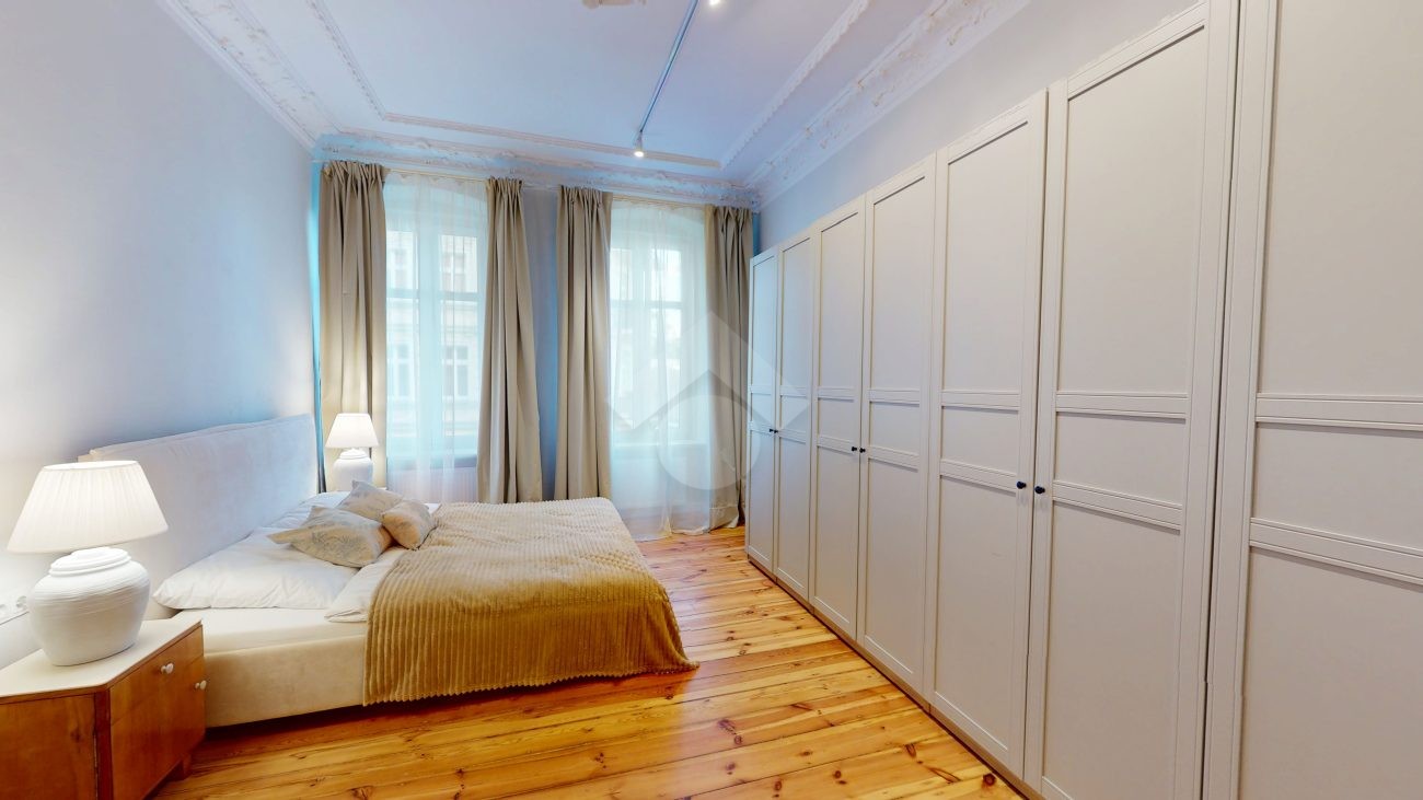 W pomieszczeniach pozostawiono oryginalną sztukaterię sufitową oraz odrestaurowaną, drewnianą podłogę, które nadają wnętrzom niepowtarzalny charakter. Dwie pary dużych, drewnianych drzwi podkreślają elegancję i styl mieszkania.