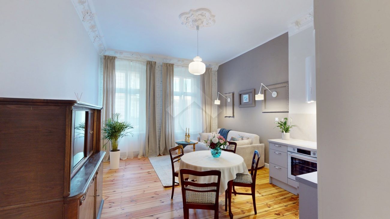 Wyjątkowe mieszkanie w kamienicy, po generalnym remoncie przeprowadzonym w tym roku. Nieruchomość została zaprojektowana z dbałością o każdy detal, tak aby zachować oryginalny, kamieniczny klimat, jednocześnie zapewniając nowoczesny komfort.