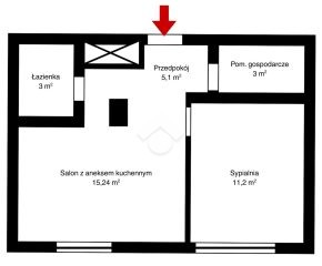 Mieszkanie składa się z przestronnego salonu z aneksem kuchennym, wyposażonym w płytę indukcyjną oraz lodówkę. Drugi pokój może pełnić funkcję sypialni, pokoju dziecięcego lub gabinetu. Łazienka wyposażona jest w prysznic oraz pralkę.
