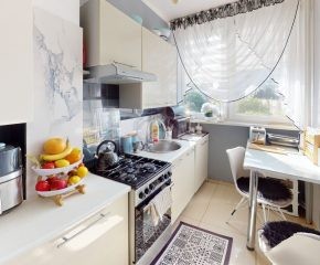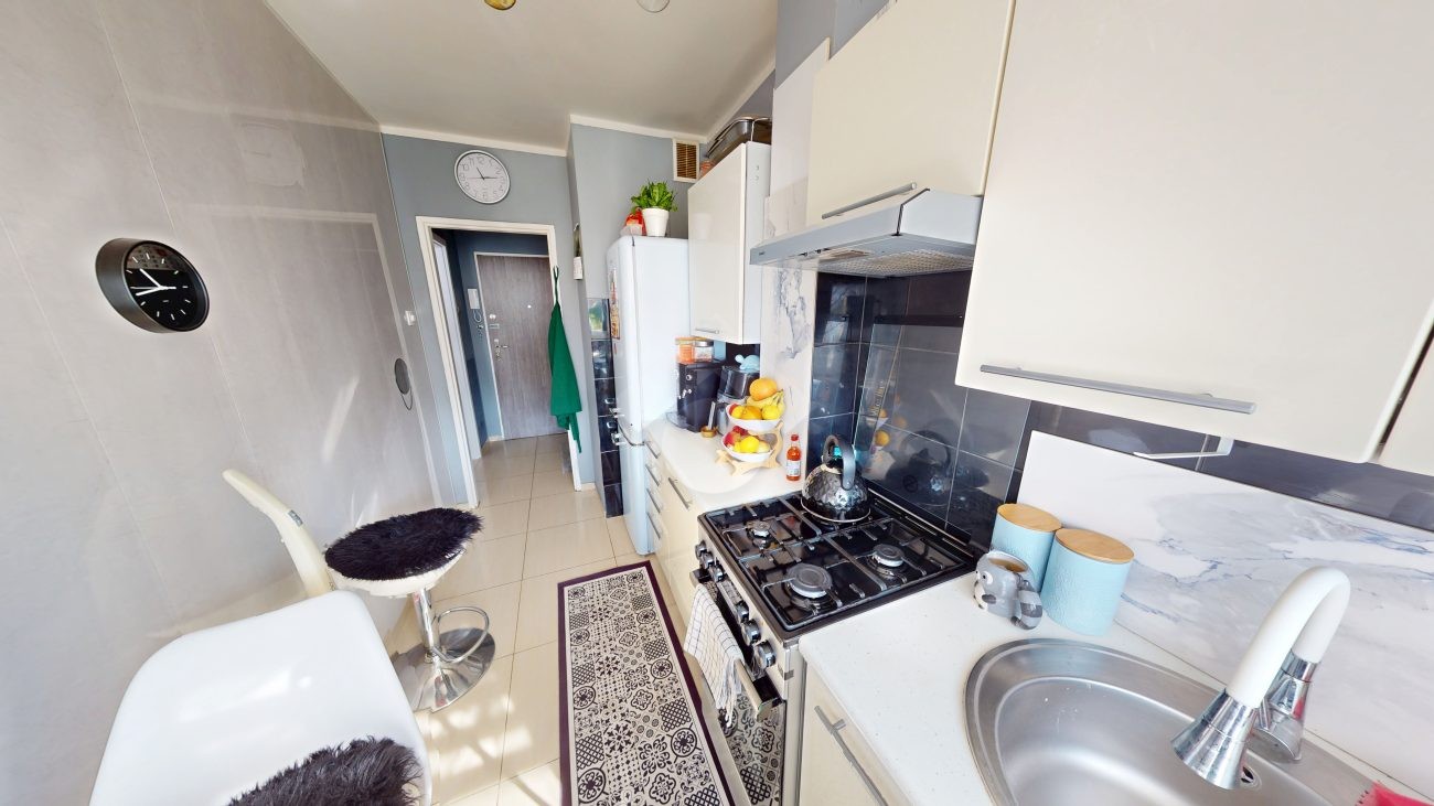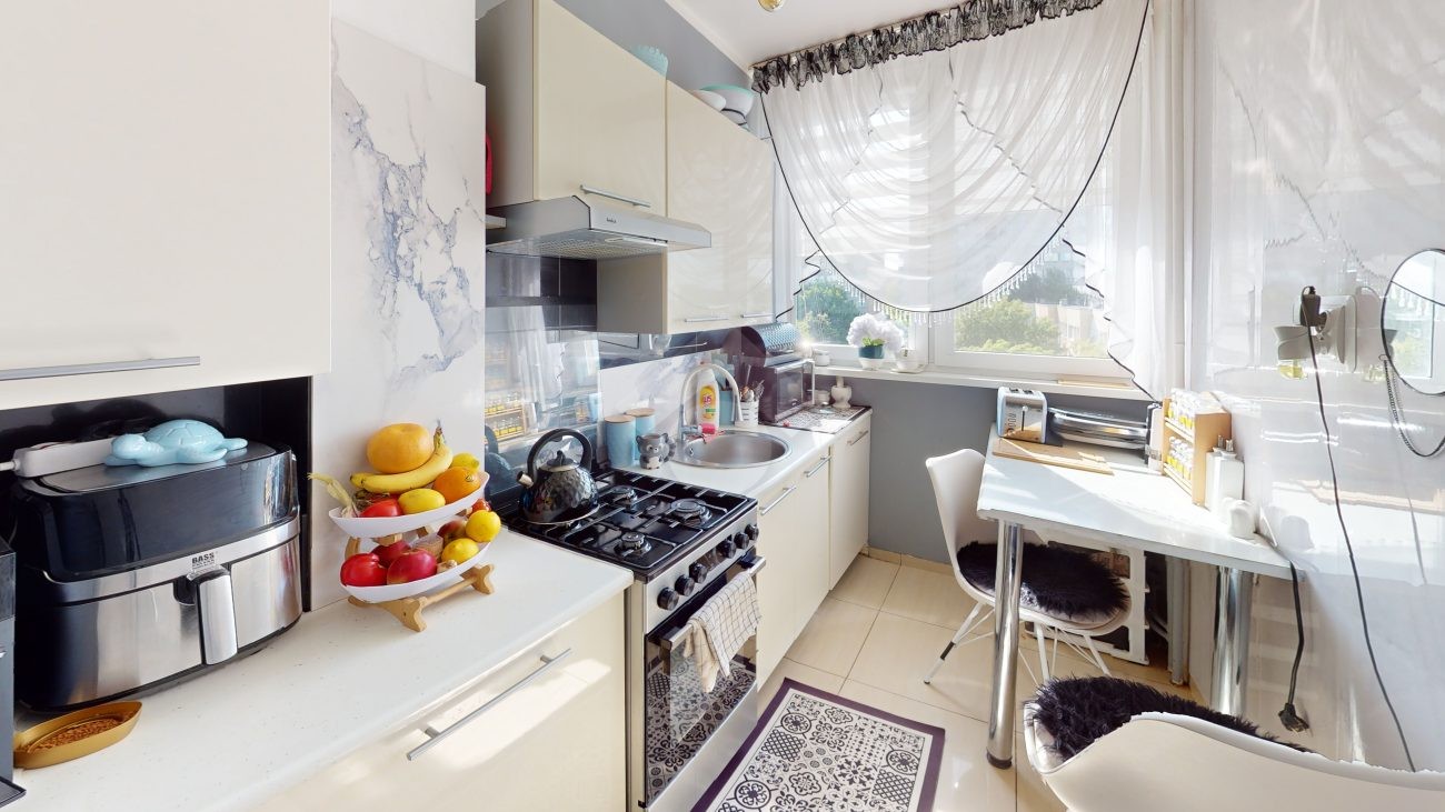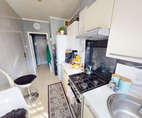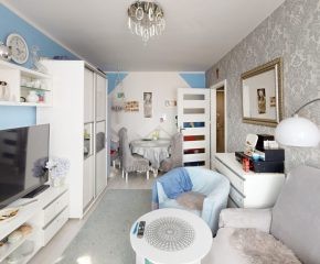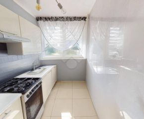 Mieszkanie do zamieszkania. Rozkładowy i funkcjonalny układ z dwoma oddzielnymi pokojami oraz osobną kuchnią. Każde z pomieszczeń, z wyjątkiem przedpokoju, dzięki dużym oknom jest bardzo dobrze oświetlone. Okna są plastikowe, a podłogi wykończone panelami oraz kafelkami. Aktualnie jeden z pokoi został podzielny na dwa mniejsze.