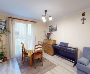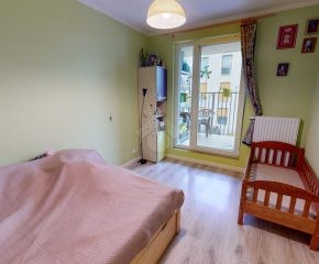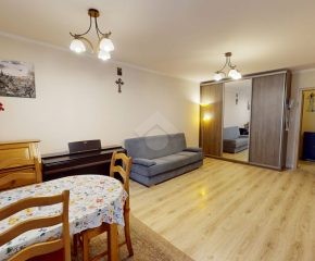 Mieszkanie jest bardzo zadbane i jasne. W pokojach na podłodze położone są panele, natomiast w kuchni, korytarzu i łazience – kafle. W jednym z pokoi znajduje się balkon francuski, który dodatkowo doświetla wnętrze. Ogrzewanie z sieci miejskiej.