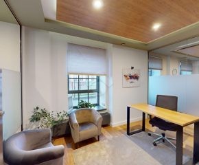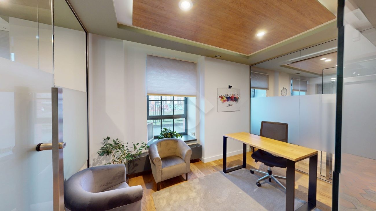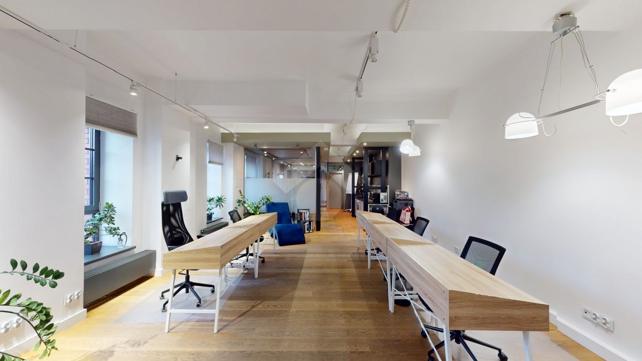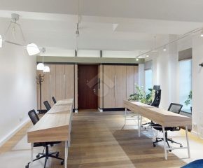 Przestrzeń została zaaranżowana w nowoczesnym, profesjonalnym stylu – idealna pod działalność wymagającą eleganckiej i komfortowej przestrzeni, np.: