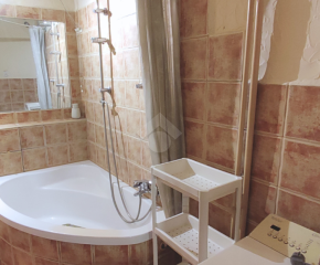 Łazienka utrzymana jest w jasnej kolorystyce i wyposażona w wannę.