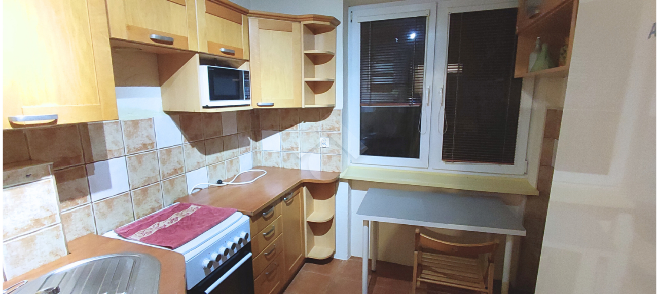 Mieszkanie ma bardzo funkcjonalny układ — oba pokoje są niezależne, a dodatkowo do dyspozycji jest osobna kuchnia z oknem, co jest ogromnym atutem.