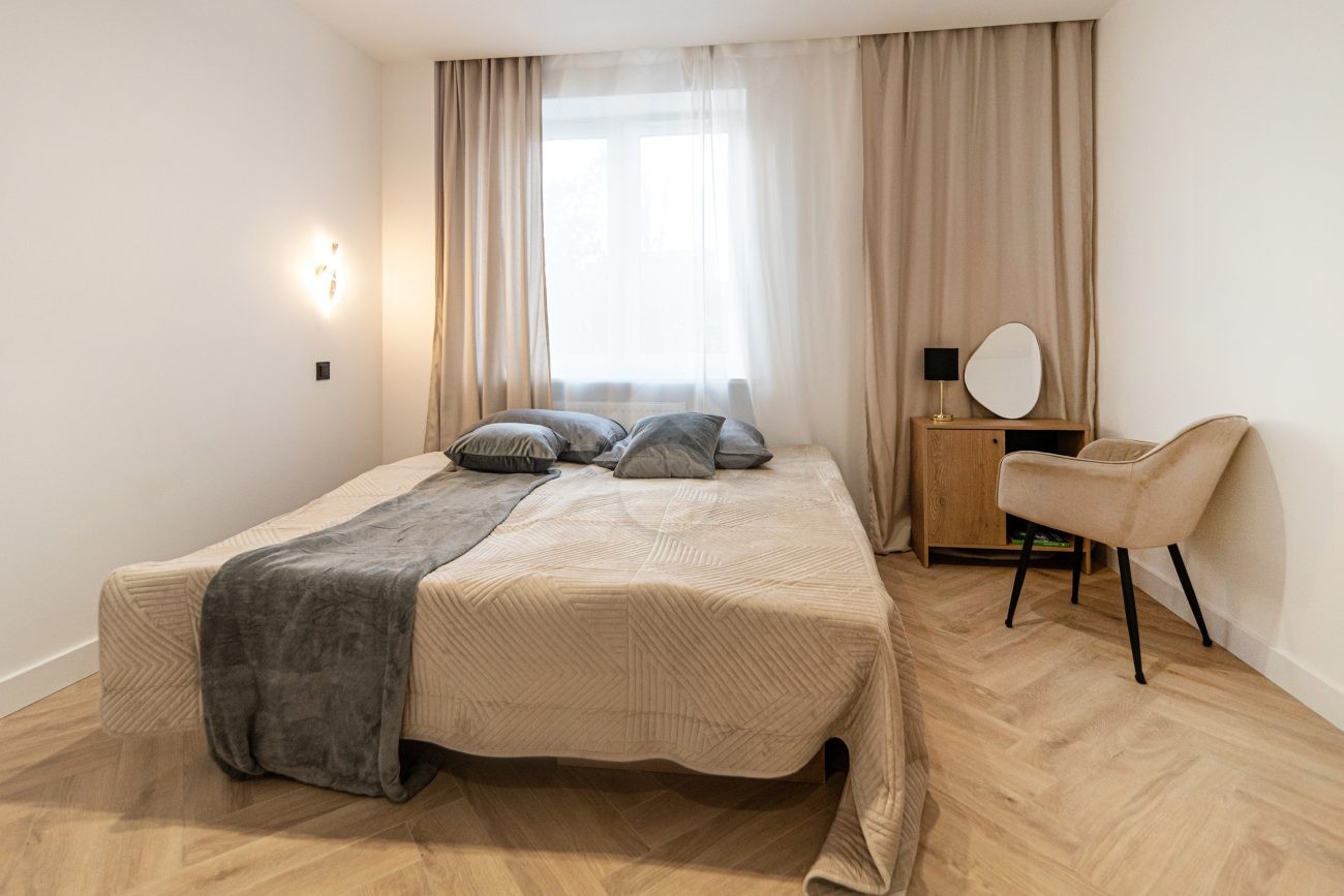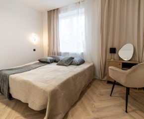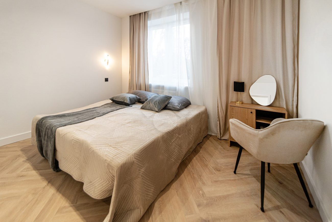 Mieszkanie po remoncie generalnym. Posiada funkcjonalny układ z trzema oddzielnymi sypialniami oraz salonem, w którym znajduje się aneks kuchenny. Każde z pomieszczeń jest dobrze doświetlone dzięki dużym oknom.
