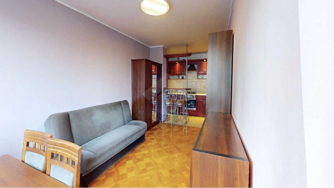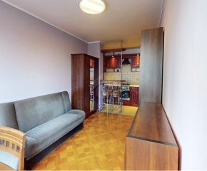 Mieszkanie gotowe do zamieszkania, wykończone w funkcjonalnym i praktycznym standardzie. W pokojach na podłodze znajduje się parkiet, natomiast w części kuchennej oraz w łazience położone są kafle. We wszystkich pomieszczeniach zamontowano okna PCV. Salon z aneksem kuchennym stanowi komfortową strefę dzienną. Z salonu znajduje się wyjście na balkon, który zapewnia dodatkową przestrzeń do wypoczynku. Kuchnia wyposażona jest w niezbędny sprzęt AGD: piekarnik, płytę gazową oraz lodówkę. Łazienka została wyposażona w prysznic oraz pralkę.