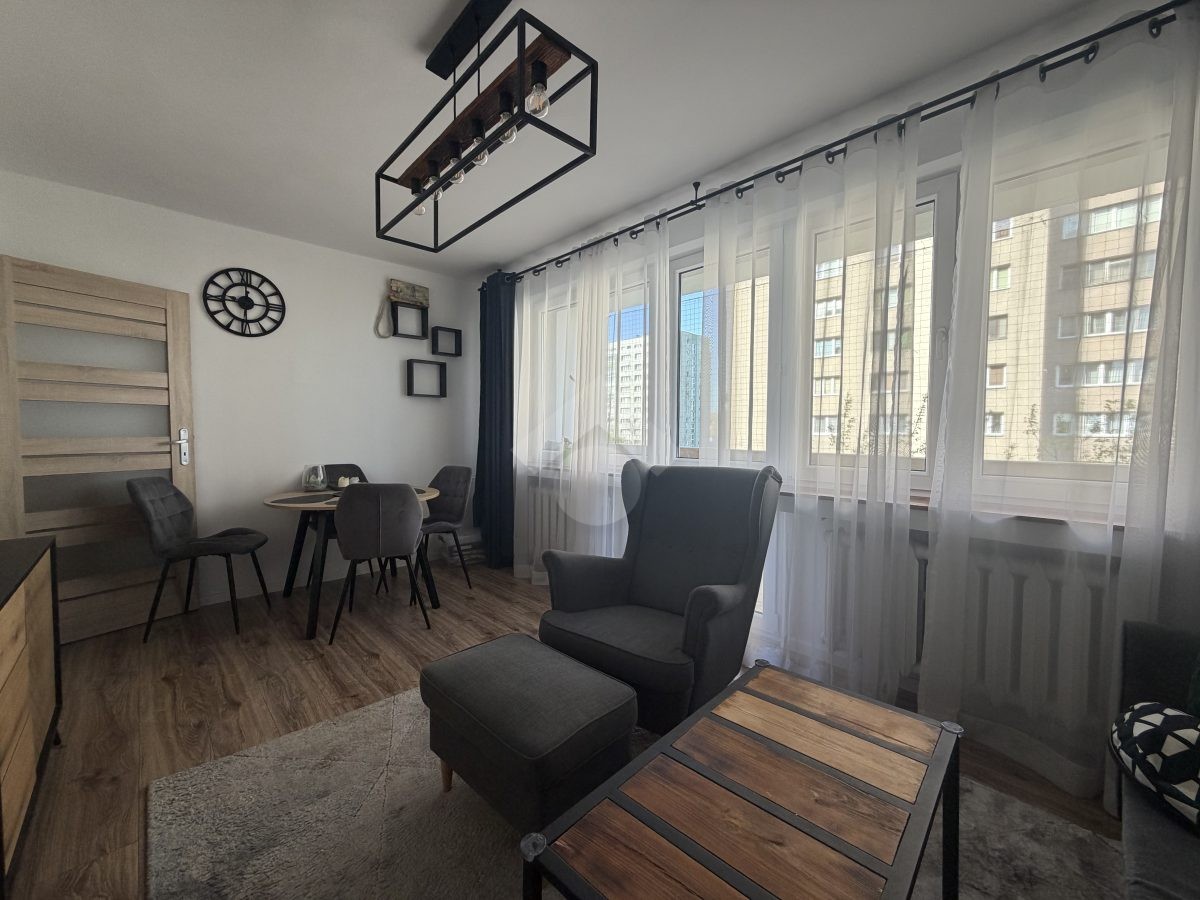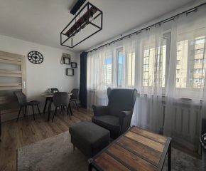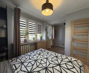 Nieruchomość: Proponujemy Państwu do wynajęcia mieszkanie o powierzchni 49,5m², znajdujące się na czwartym piętrze w 11-piętrowym budynku z 1977 r. Mieszkanie składa się z pokoju dziennego, sypialni + garderoby/gabinetu, oddzielnej kuchni, łazienki z wc, przedpokoju oraz loggi. Nieruchomość jest w pełni wyposażona.