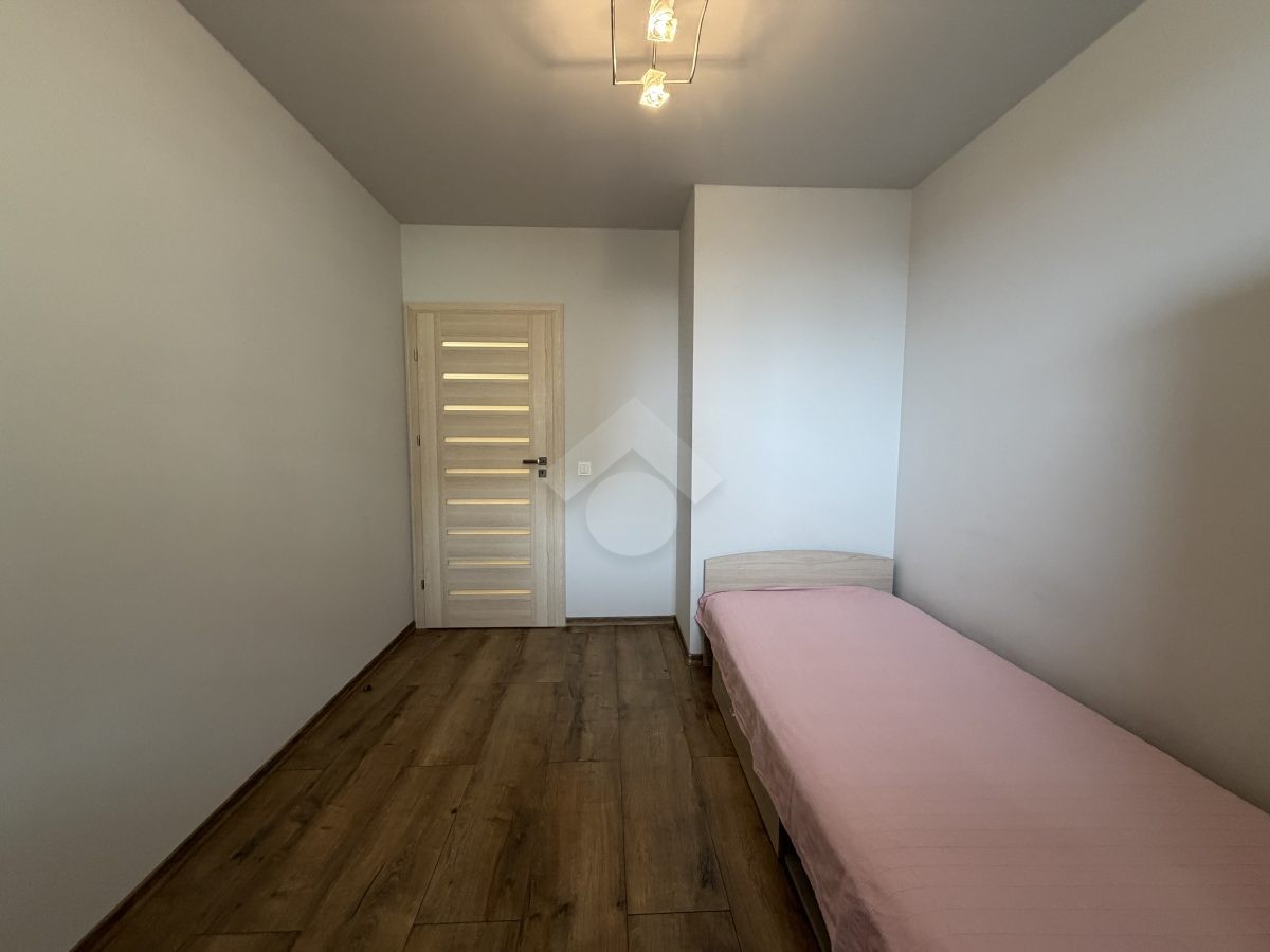 Stan nieruchomości: BARDZO DOBRY – Ogrzewanie i ciepła woda realizowane z sieci miejskiej. Na wyposażeniu między innymi: sofa, lodówko-zamrażarka, płyta indukcyjna, piekarnik, pralka, łóżko, szafa, komoda, garderoba w sypialni.